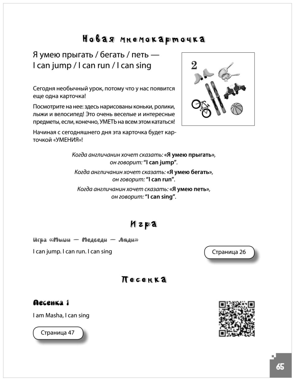Большое значение в этой подготовке имеют занятия дома с родителями или в группе. А чтобы ребенок не заскучал и не заупрямился, обучение должно быть веселым и как можно больше походить на игру. Авторская методика обучения детей английскому языку "Волшебное пианино" поможет вам в этом. Представленный в книге курс состоит из 62 уроков. Каждый из них, как конструктор, собирается из огромного разнообразия веселых разминок, потешных игр и задорных песенок, а также включает в себя работу с яркими мнемокарточками, которые нужно будет вырезать из цветной вклейки. Кроме того, все уроки сопровождаются аудиозаписями, которые вы сможете скачать, перейдя по ссылке или по QR-коду. Для родителей и педагогов. Для домашнего и группового обучения.