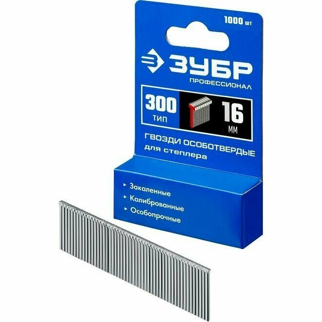 Гвозди ЗУБР тип 300 длиной 16 мм предназначены для использования в степлерах и нейлерах. Они обеспечивают надежное крепление благодаря высококачественной стали.