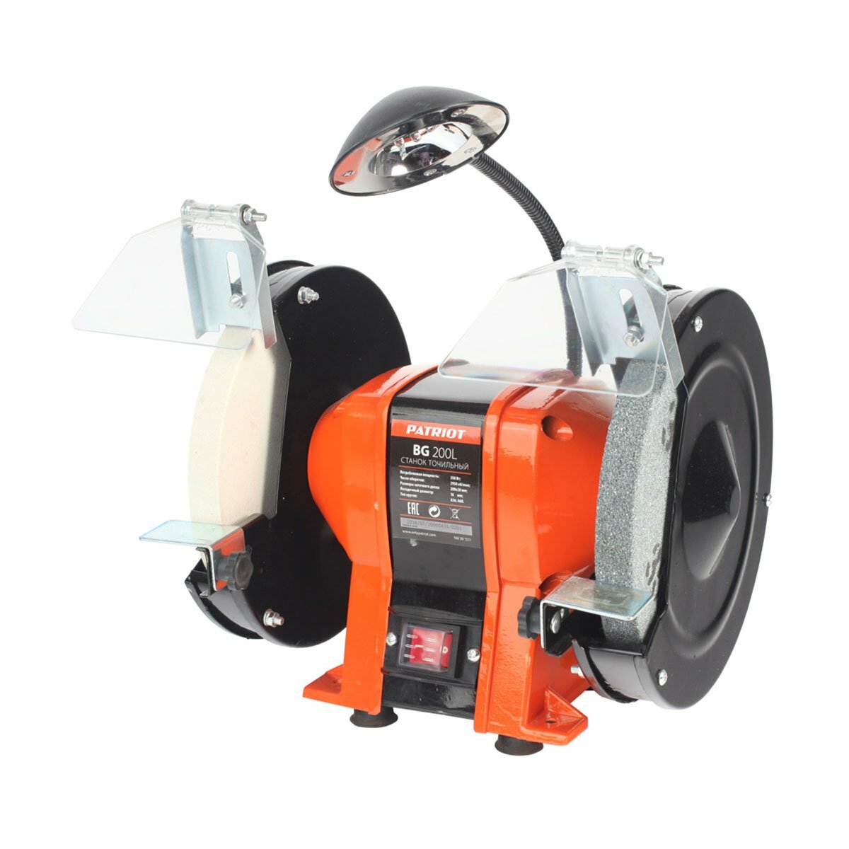 | Прочие особенности и свойства | Точильный станок PATRIOT BG200L 160301511 оснащается японскими подшипниками высокого качества, которые отличаются устойчивостью к износу. Два точильных камня имеют разную зернистость, что позволяет осуществлять как заточку, так и шлифовку режущей кромки инструмента. Для удобства в работе конструкция модели предусматривает лампу местного освещения.,Комплектация:защитный экран,шайба, переходник на круги 32 мм. |