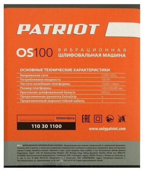 Машинка шлифовальная плоская (вибрационная) Patriot »