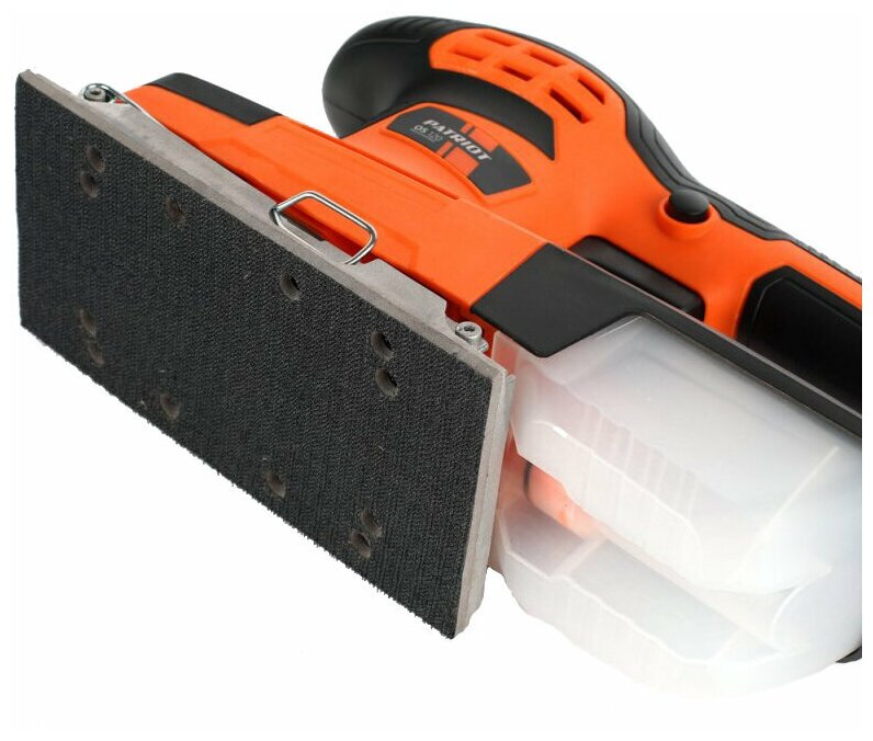 Система крепления шлифовальной бумаги позволяет легко и быстро заменять листы