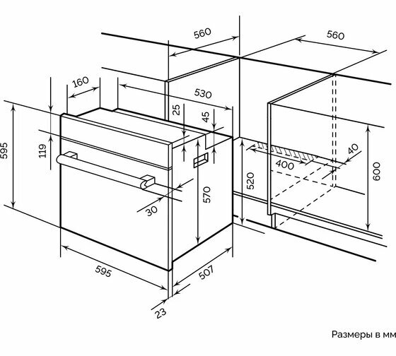 | Размер для встраивания (ВхШхГ) | 600х560х560 мм |