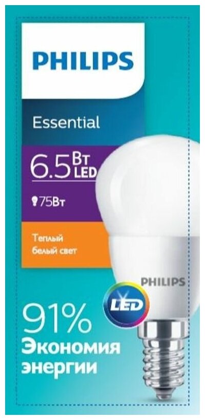 Philips ESS E14 6 Вт - светодиодная лампа с теплым белым свечением и универсальным цоколем Е14.