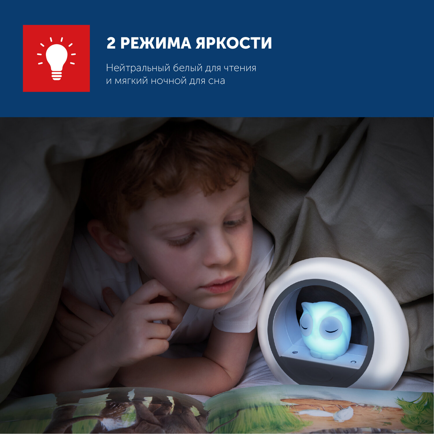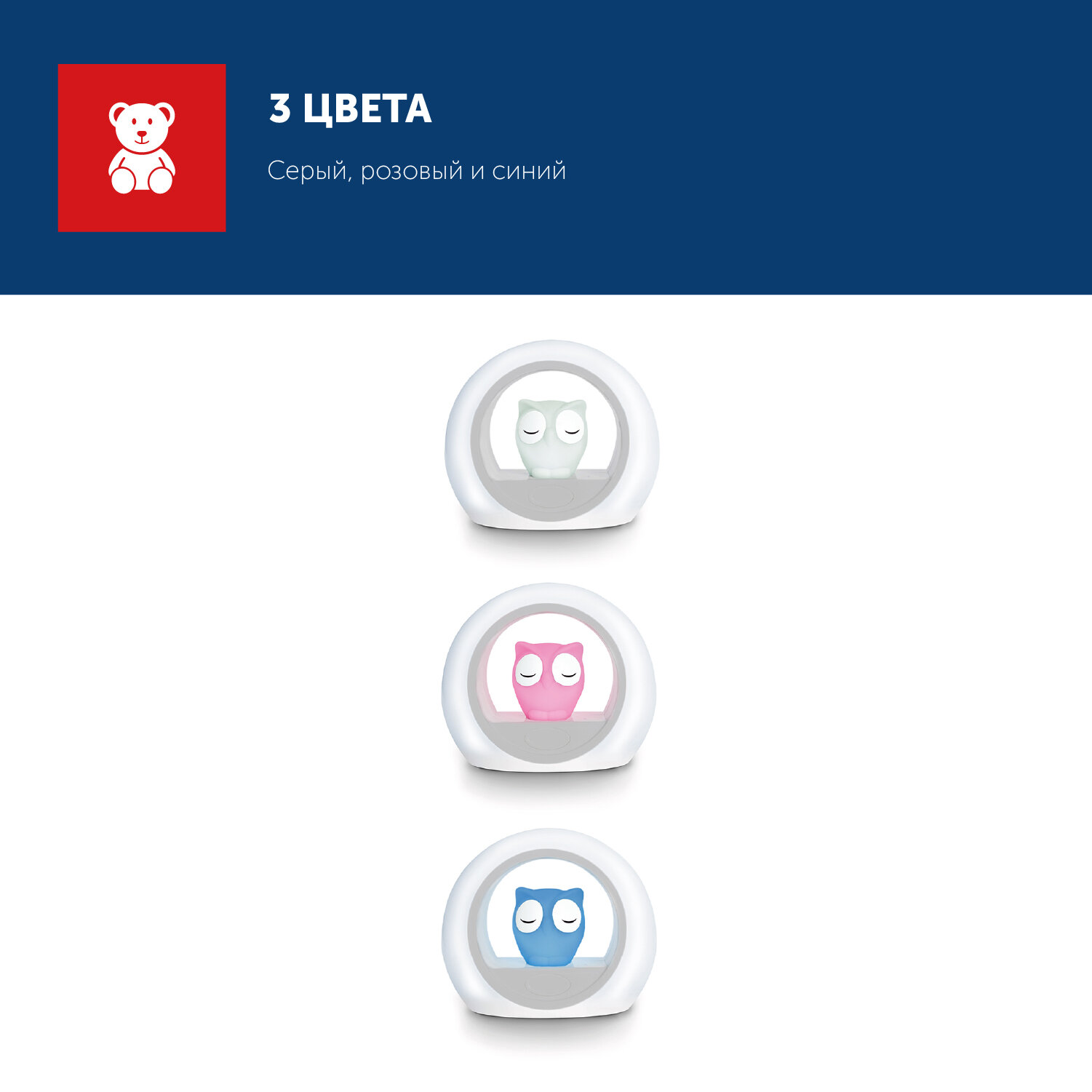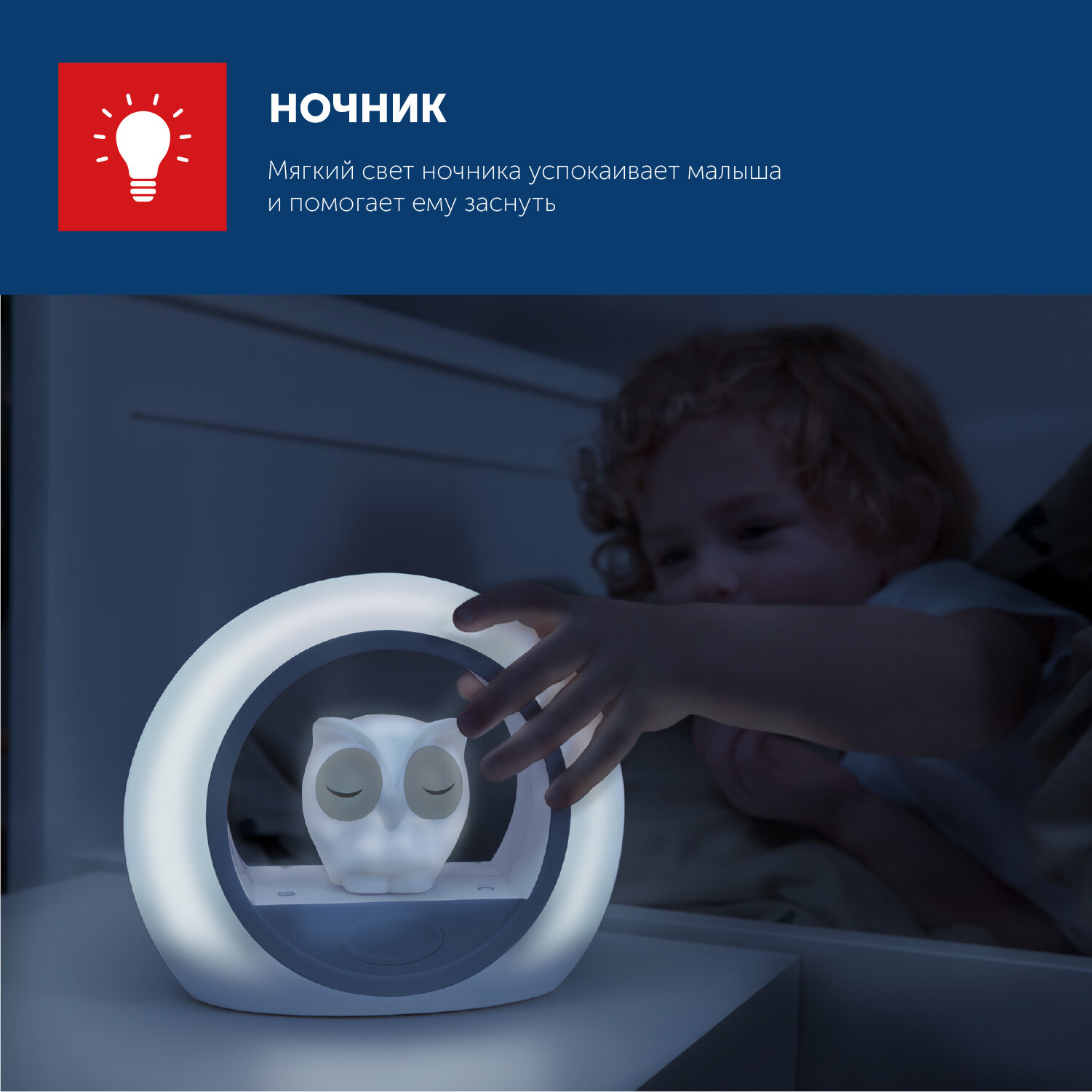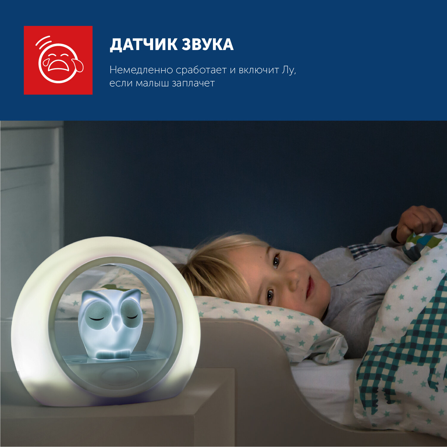 Светильник, включающийся от звука голоса, который помогает успокоить вашего малыша. Загорается, если ваш ребёнок проснулся. Если ваш ребёнок проснулся ночью, то активируется датчик включения звука, и сенсор загорается мягким светом. Таймер автоматического отключения. Установите таймер, чтобы устройство автоматически выключилось после того, как ваш малыш заснёт. 2 цвета в одном. Сова и внешнее кольцо могут быть включены по отдельности. Чтобы свет был более ярким используйте их вместе, для более мягкого свечения включите что-то одно. Настройка яркости. Вы можете настроить яркость света как самой совы, так и внешнего кольца. Выбирайте яркий, мягкий или рассеянный свет.