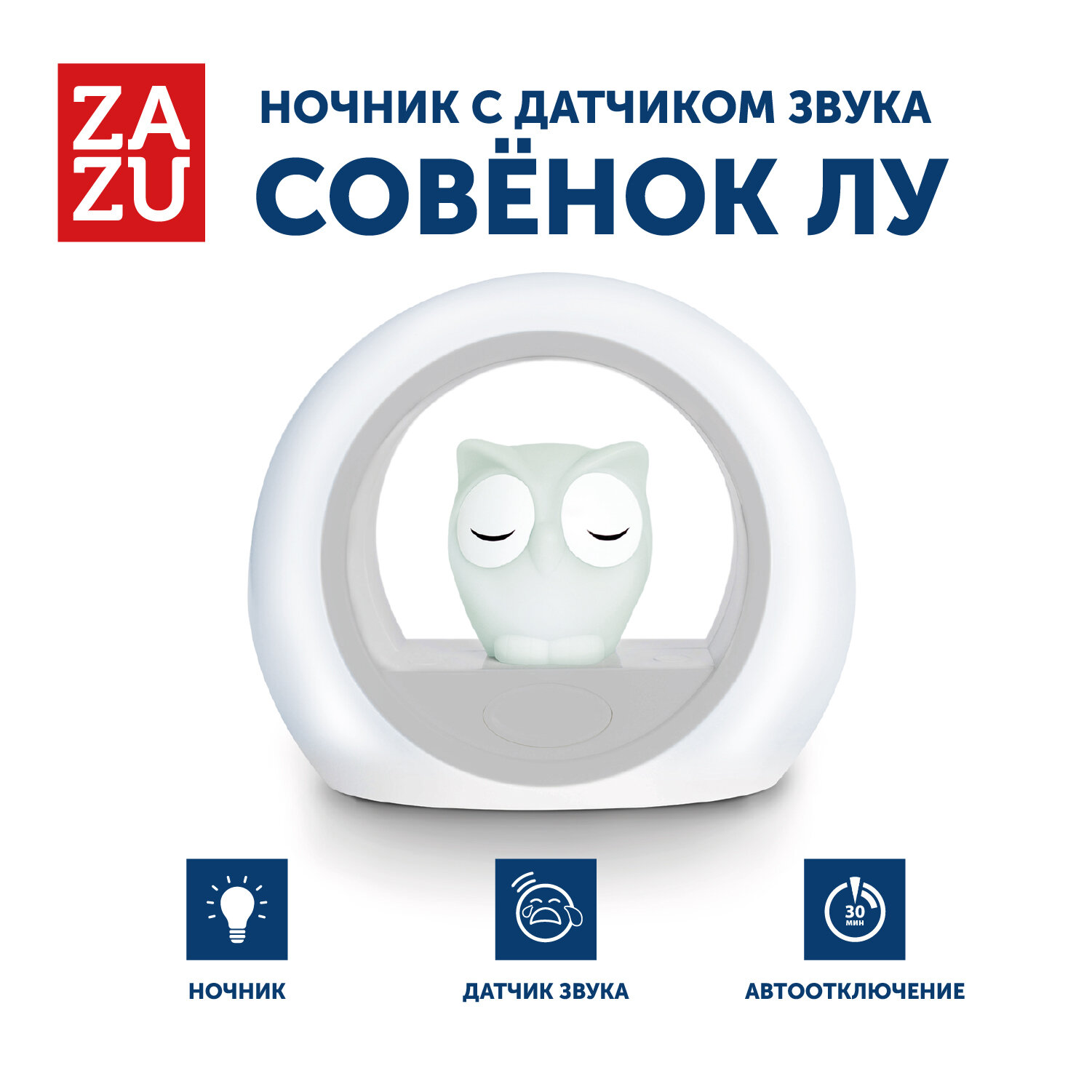 - ZAZU | Ночник для детей с датчиком звука Сова Лу