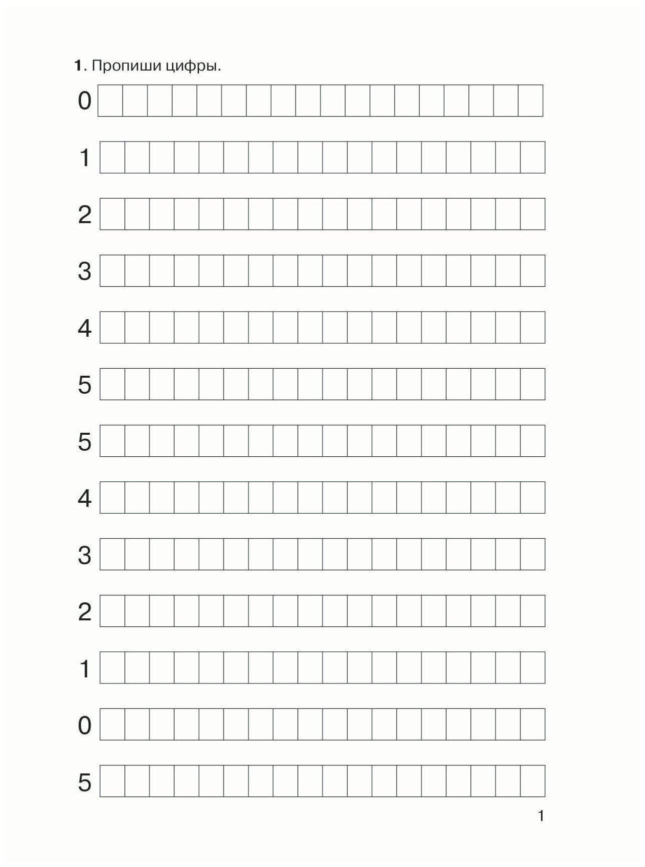 В книге множество примеров, которые учат работать с числами без "предметного" подкрепления. Большое внимание уделено "правописанию" цифр. Ребёнок сначала запоминает внешний вид цифры, а затем пробует её писать.