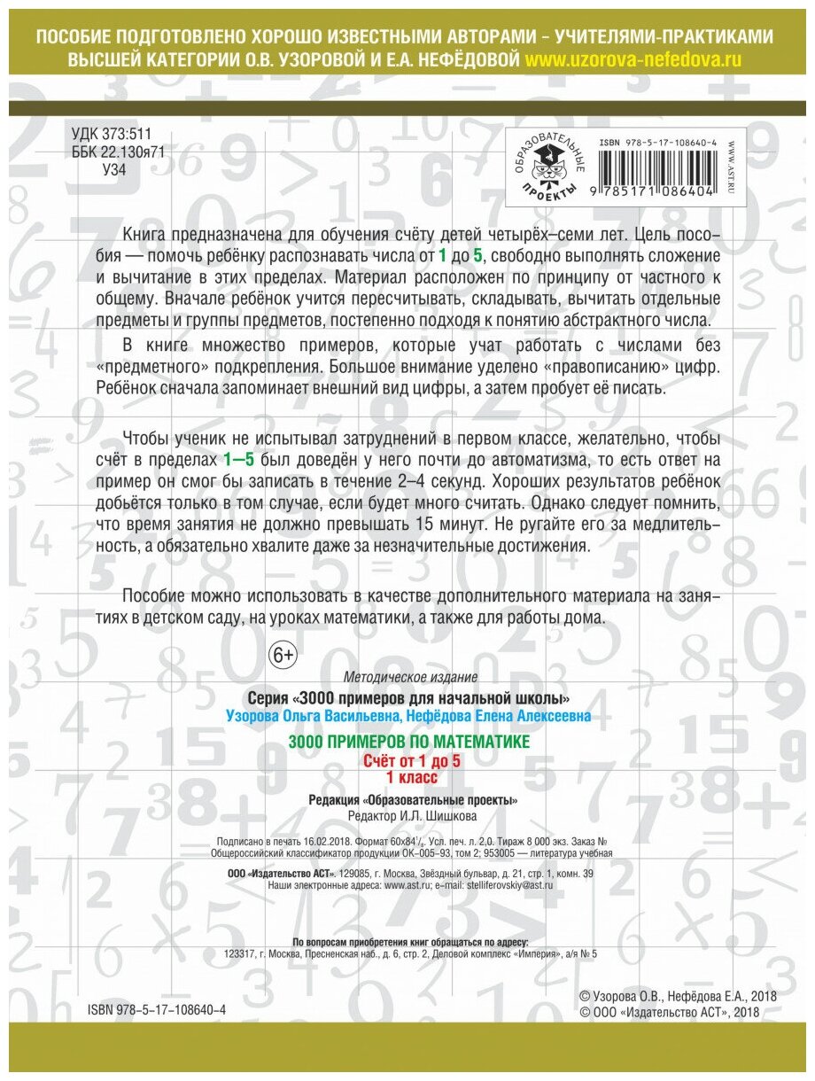 3000 примеров по математике. 1 класс. Счёт от 1 до 5. (Елена Алексеевна Нефедова, Ольга Васильевна Узорова); АСТ, 2024