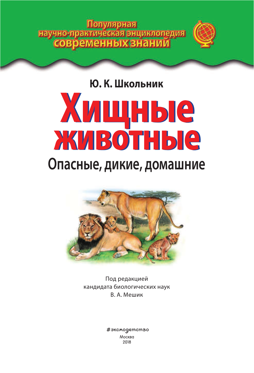 Хищные животные. Опасные дикие домашние (для ПР) (Школьник Юлия Константиновна); ООО "Издательство "Эксмо", 2018