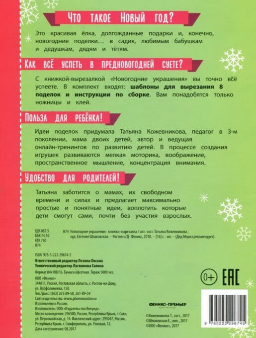 Сервис сравнения цен СкидкаГИД предлагает сравнить цены на товар «Книга: Новогодние украшения. Книжка-вырезалка (Кожевникова Татьяна); Феникс-Премьер, 2018»