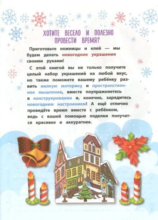 Очень прикольные новогодние поделки. Мы уже, как вы понимаете, готовимся к НГ вовсю. Пока что сделали пару поделок, чтобы оценить покупку. Остальное ждет своего часа, хотя оставили книжки в покое мы с большим трудом. Поделки невероятно крутые – их много, они реально создают атмосферу НГ и Рождества. Под каждой поделкой есть инструкция подробная по сборке. В принципе ученик начальной школы с этим справится самостоятельно. Хотя мы с удовольствием собирали поделки всей семьей.