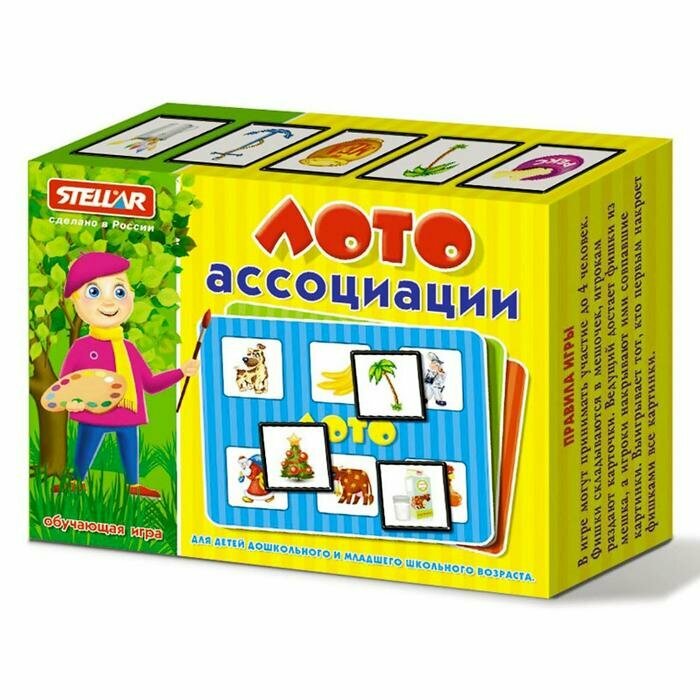 Лото Stellar Ассоциации – полезная и увлекательная настольная игра с несложными правилами, которая понравится не только ребенку. Она способна увлечь всю семью. В комплект входят карточки и фишки с яркими цветными картинками, способствующие развитию мышления, внимательности и коммуникативных способностей, а также помогающие научиться находить связи между предметами. Ребенок учится следить за ходом игры и удерживать в уме изображение своей карточки – это важный навык для будущего школьника.