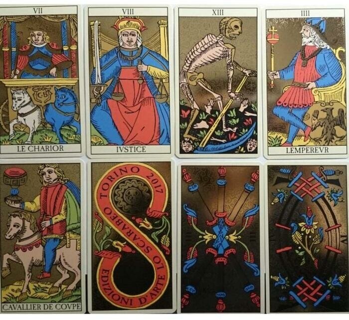 Купила эту колоду, так как нравятся колоды в золоте. Колода в целом понравилась, качество достойное. Вырубка карт ровная. Гармоничное сочетание рубашки в коричневых оттенках и бежево-сливочной рамки. Золота много. Как мне показалось, изображение всех арканов увеличено и растянуто. За счет этого головы персонажей арканов сверху обрезаны и не попадают целиком в карту. Это единственный минус. В целом, достойный экземпляр в коллекцию и для любителей "Марселя", и для любителей золотых колод.