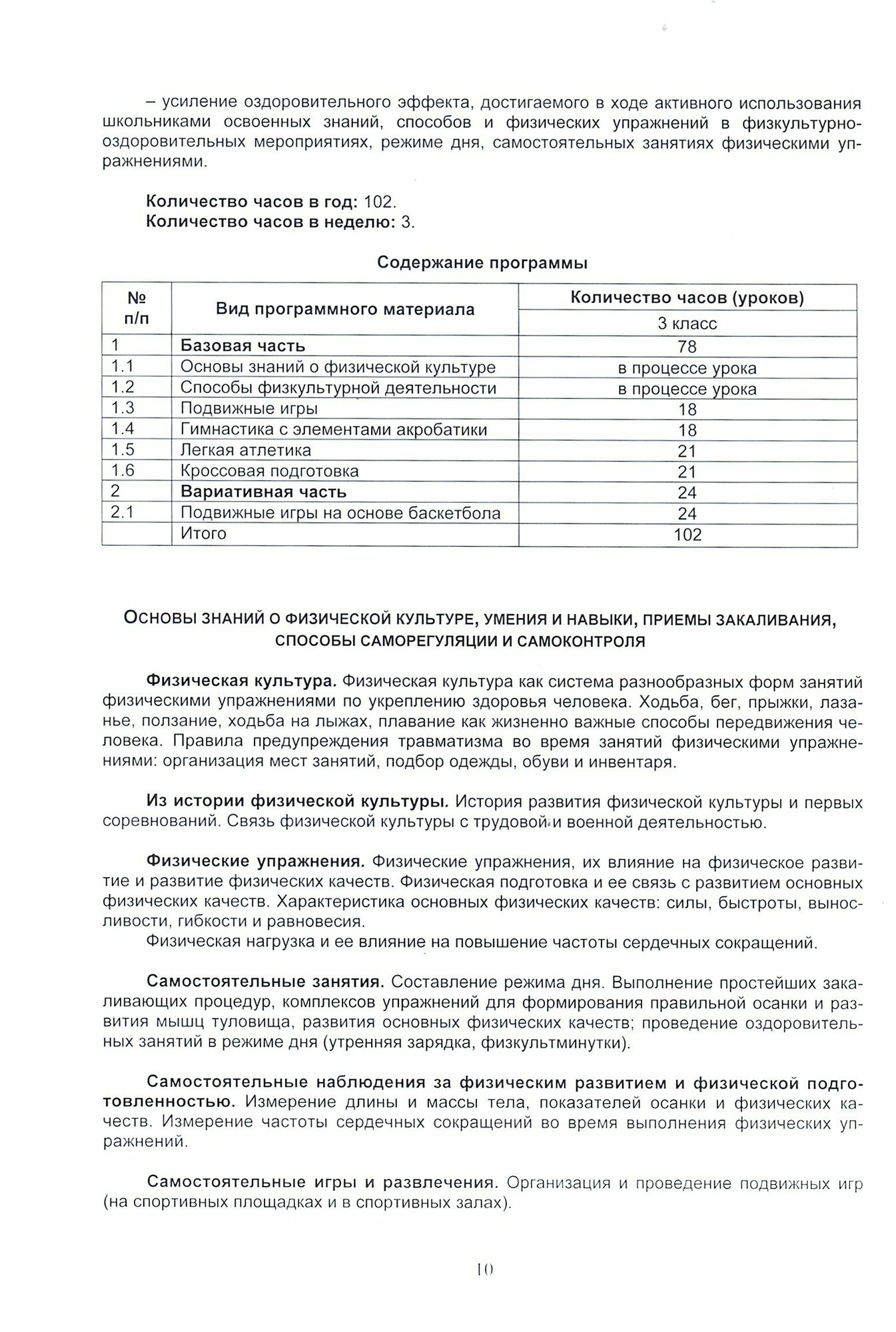 Структура программы включает в себя: нормативно-правовые документы, в соответствии с которыми должно вестись преподавание предмета "Физическая культура" в 3 классе начальной школы, программно-методическое обеспечение предмета, пояснительную записку, требования к уровню подготовки обучающихся 3 класса, планируемые результаты освоения программы (личностные, метапредметные, предметные), календарно-тематическое планирование с указанием темы урока, видов деятельности обучающихся на уроке, достигаемых на каждом уроке планируемых результатов.