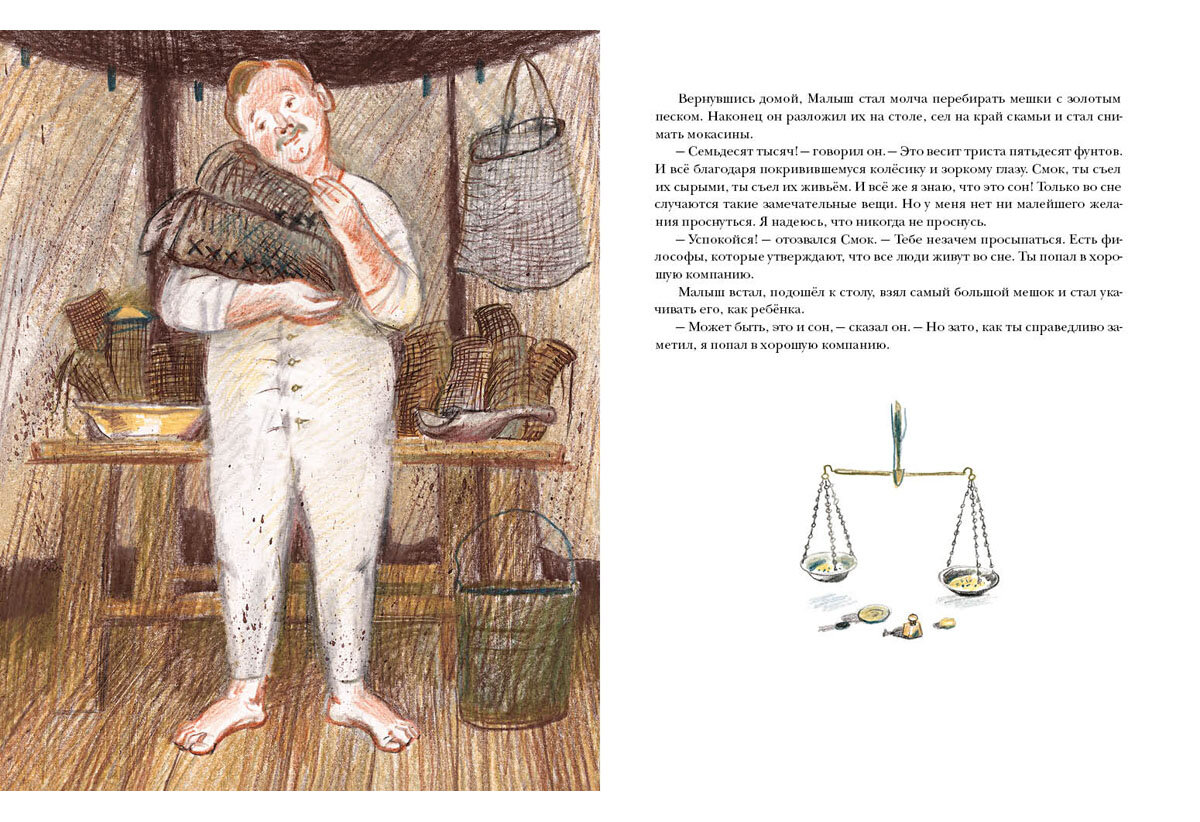Что касается сюжета, мы с дочкой неожиданно увлеклись. Буквально выдирали книгу друг у друга из рук. Оказывается, некоторые вещи начинаешь понимать с возрастом. Или воспринимаешь иначе. Дочь же совершенно очарована всей этой романтикой золотой лихорадки.