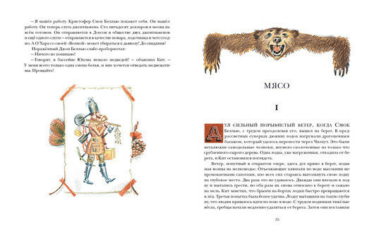 У нас есть книга Белый Клык этого же издательства и из этой серии, поэтому истории Смока взяла не раздумывая. Добротный перевод, качественная полиграфия, хорошие иллюстрации – издательство назначает за каждый том немалую цену, но отрабатывает всё до последнего рубля, это приятно. Вы получаете отлично оформленную книгу с плотным переплётом, ленточкой-закладкой, качественным текстом и красивыми иллюстрациями в изрядном количестве – их приятно рассматривать.
