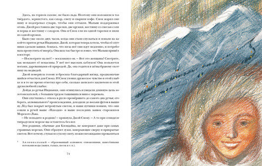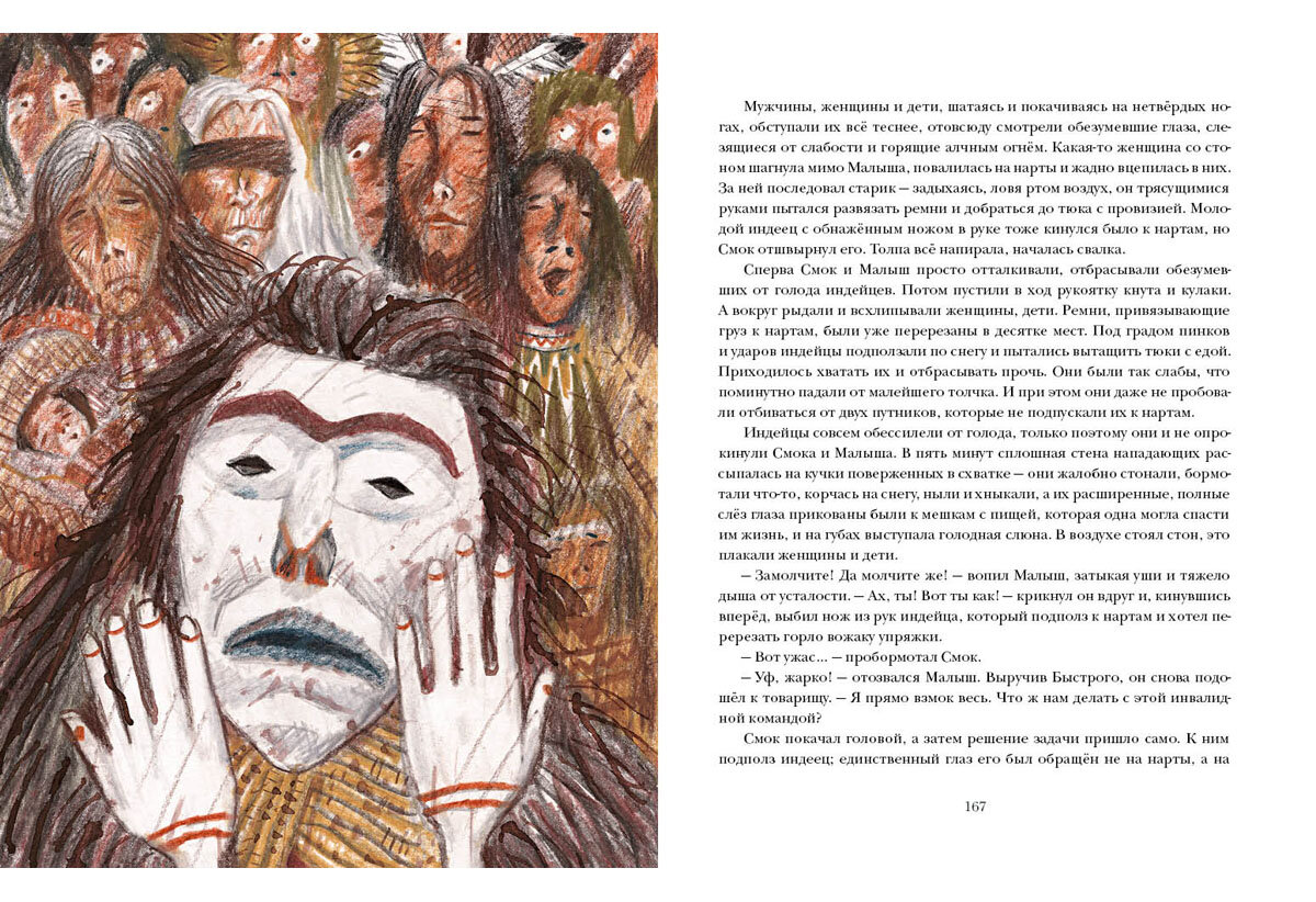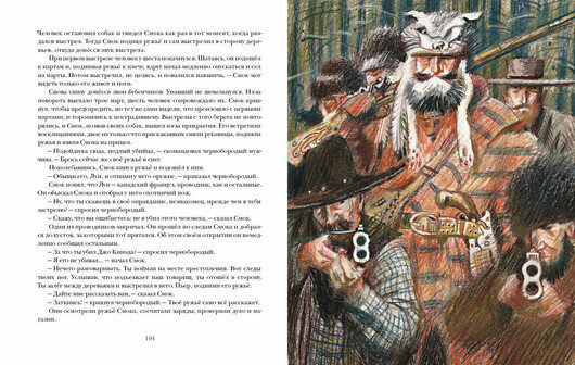 Не читала эту книгу в детстве, я вообще творчество Джека Лондона считаю таким более мальчиковым что ли. Купила, потому что очень понравилось оформление и неожиданные иллюстрации – не цифровые, не акварель, не монохромная графика. Удивительной техники рисунки, очень живые и совершенно не современные (в данном случае это комплимент).