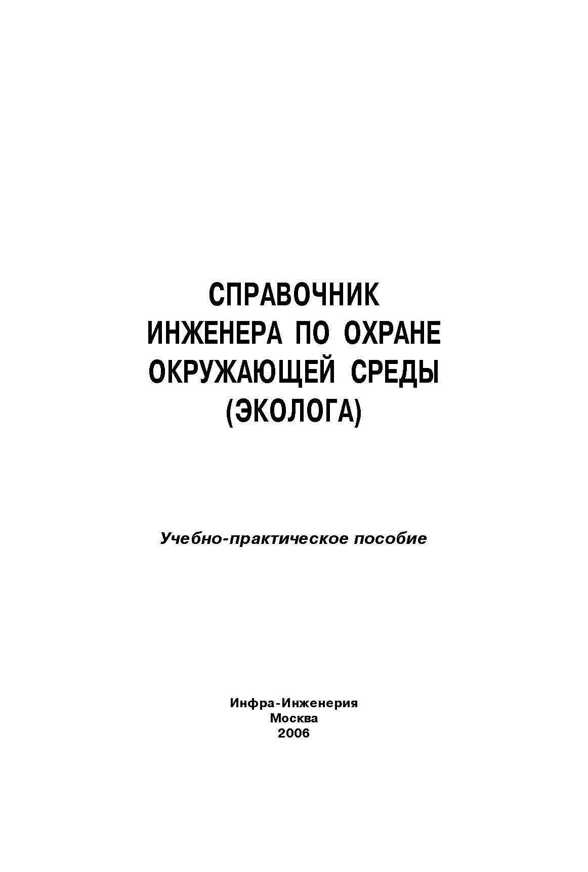 Справочник инженера по охране окружающей среды (Эколога) (Авторский коллектив); Инфра-Инженерия, 2006