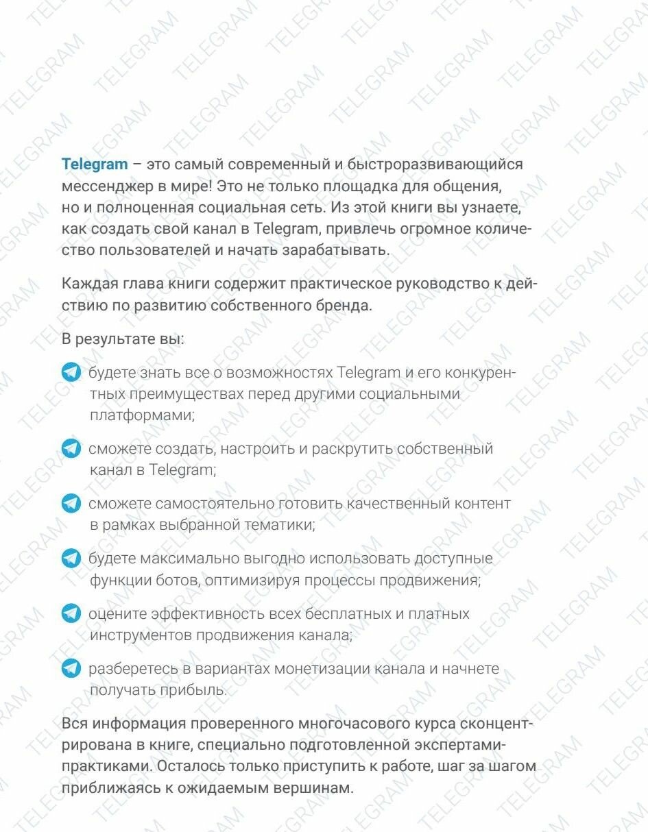 На основании собственного опыта создатели онлайн-курса "Как зарабатывать в Telegram", ставшего основой этой книги, делятся самыми важными приемами создания и развития собственного Telegram-канала и предлагают полноценное руководство к действию в рамках молодой, но весьма перспективной социальной сети.