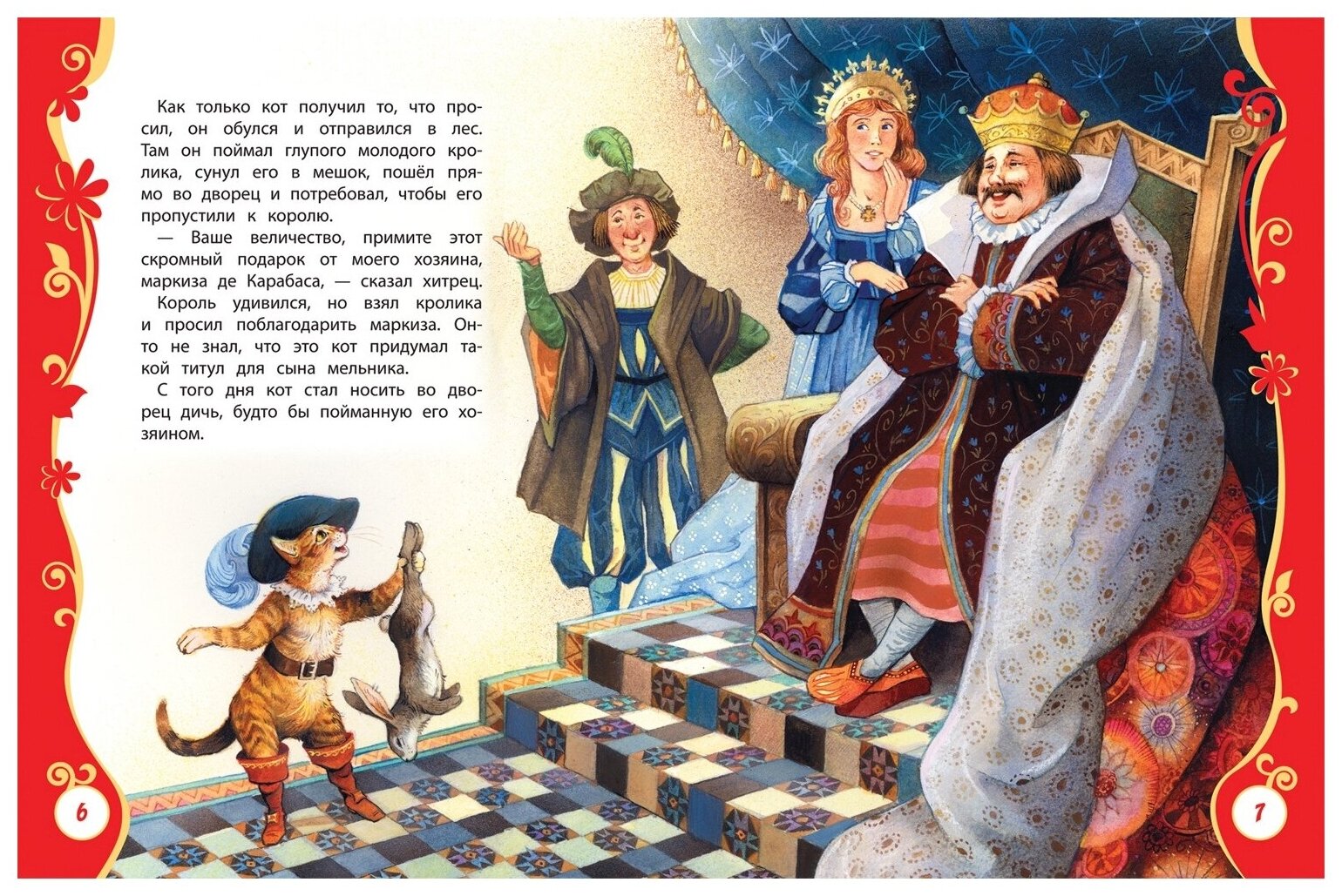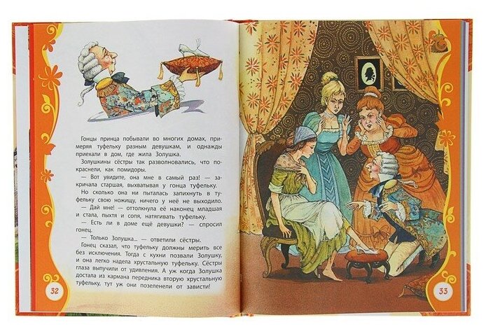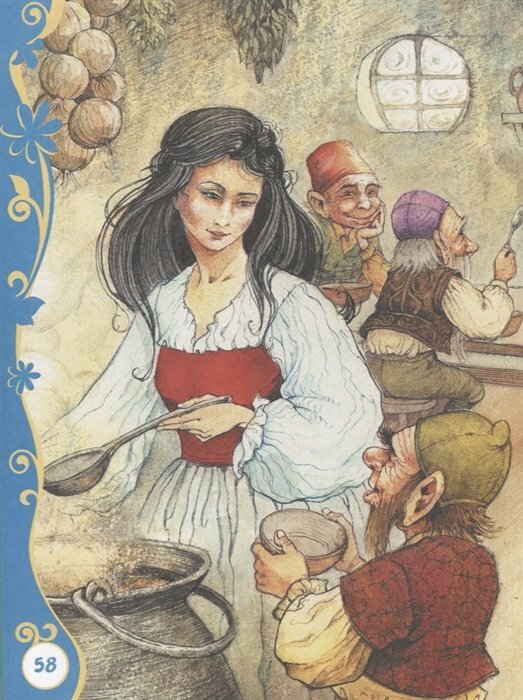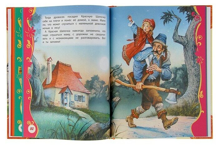 А вот и минусы - сказки даны в сокращённом пересказе, даже не знаю на сколько сильно, т.к. полного варианта под рукой нет, обратил внимание, что мало текста и посмотрел в интернете. И ещё маленький неприятный момент: поля, не понятно зачем такие прекрасные иллюстрации обрамлять таким нарочитым фотошопом. -