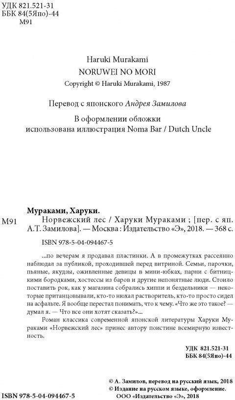 Книга: Норвежский лес (Мураками Харуки); ООО "Издательство "Эксмо", 2020