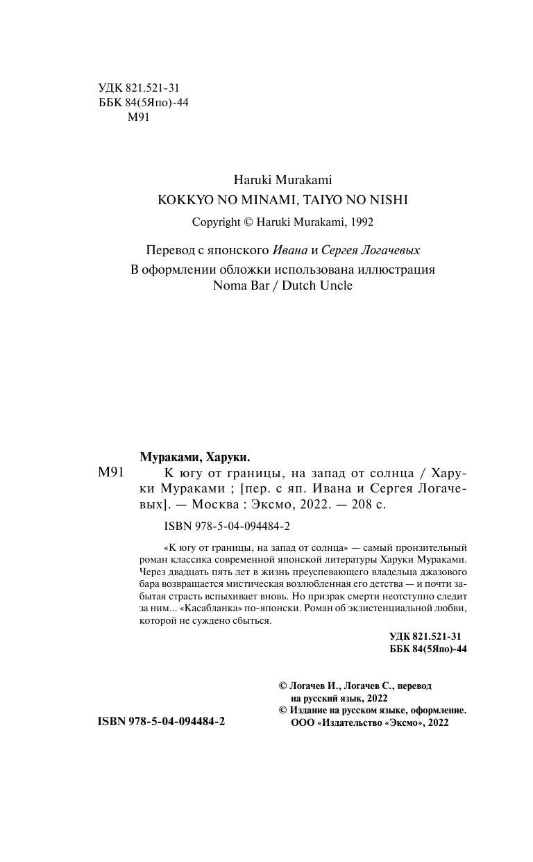 К югу от границы на запад от солнца (Харуки Мураками); Эксмо, 2024