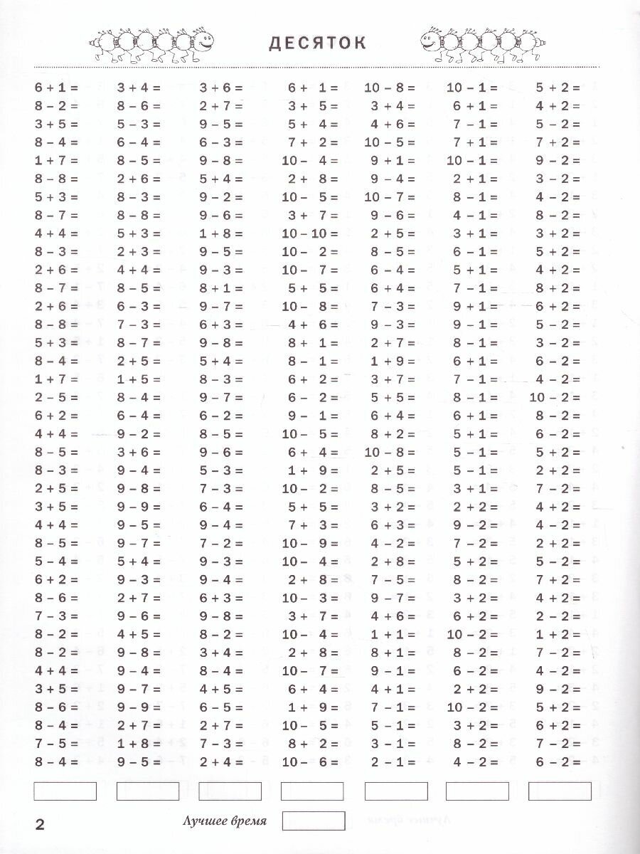 Для того, чтобы полностью автоматизировать счёт в пределах 10, все 3000 примеров решать не пришлось. Прорешали пять страниц, ушло меньше месяца, занимались 2-3 раза в неделю.