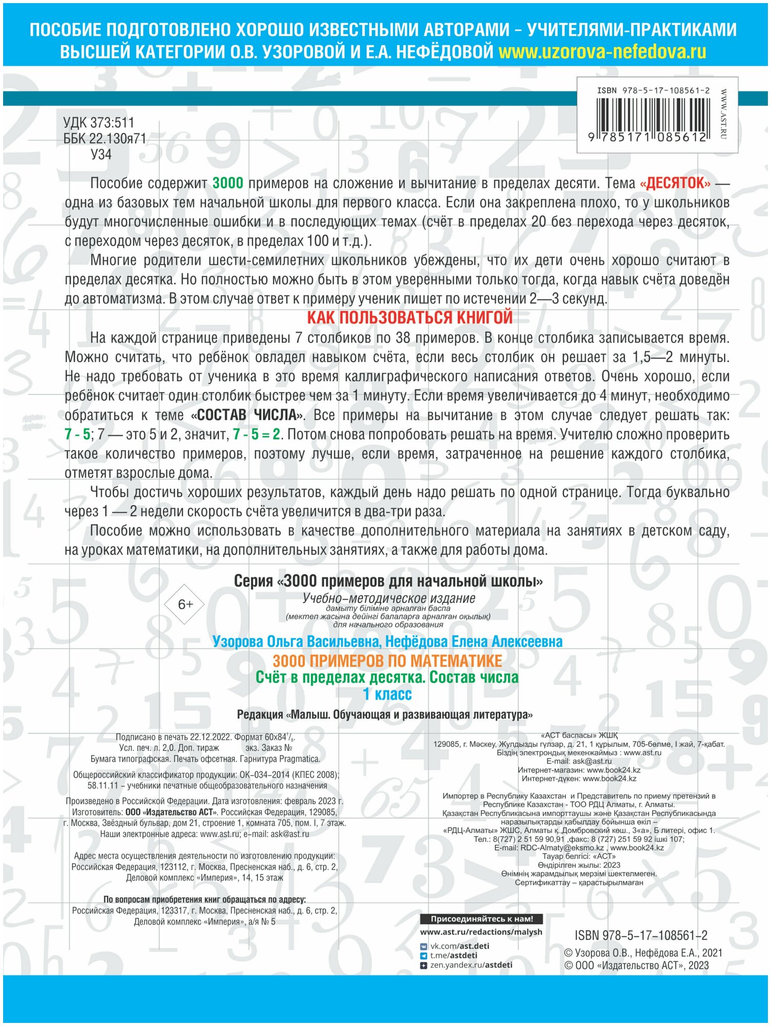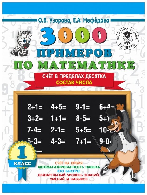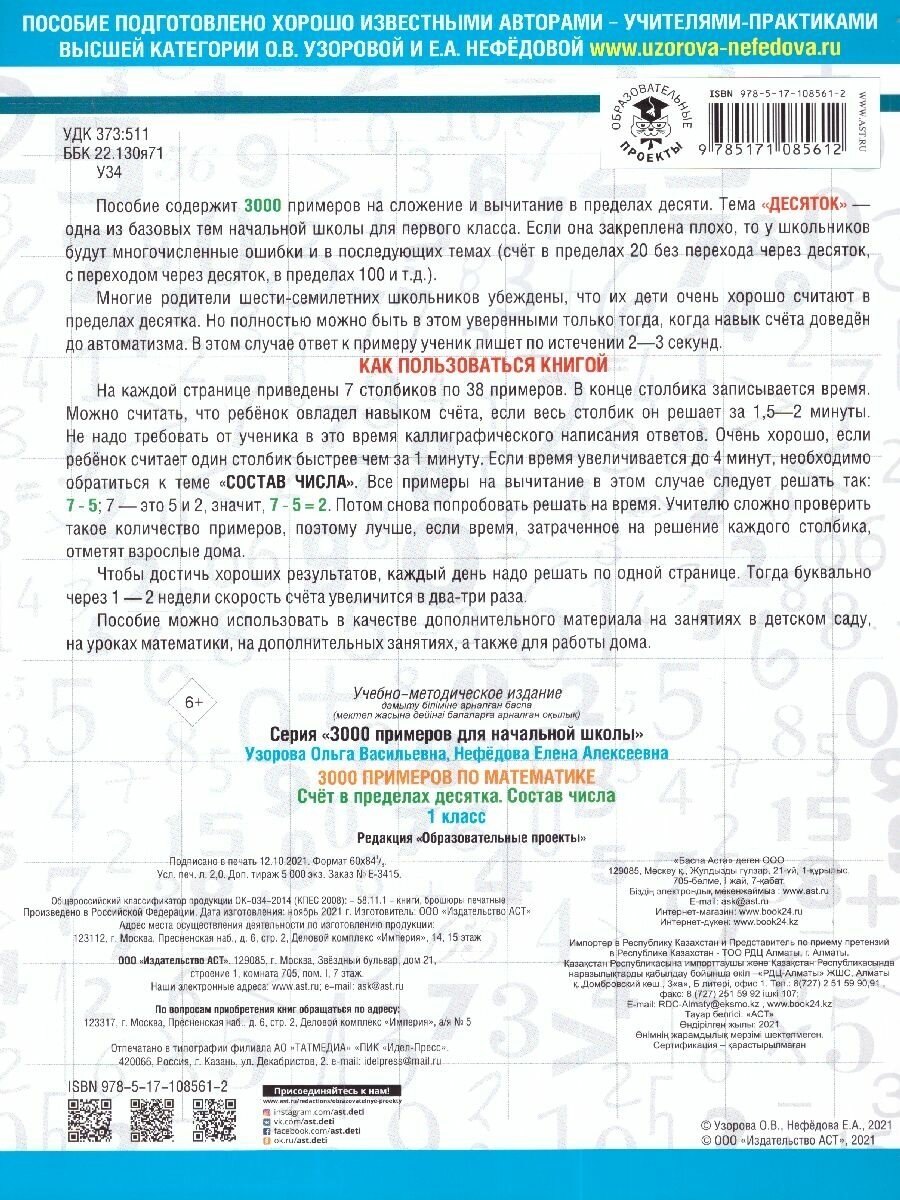 3000 примеров по математике. 1 класс. Счёт в пределах десятка. Состав числа (Елена Алексеевна Нефедова, Ольга Васильевна Узорова); АСТ, 2025