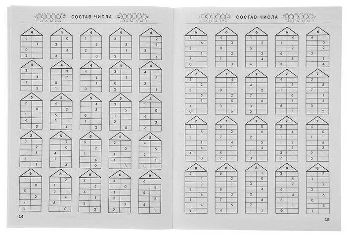 Книжка - не просто сотни примеров, они расположены в специальном порядке. Начинается с лёгких: прибавить ноль, единицу, два. На этом этапе ребёнок особо не напрягается, ему легко, создаётся хороший настрой, но постепенно сложность нарастает. Отрабатываются примеры сначала на тройку, потом на четвёрку и так далее.