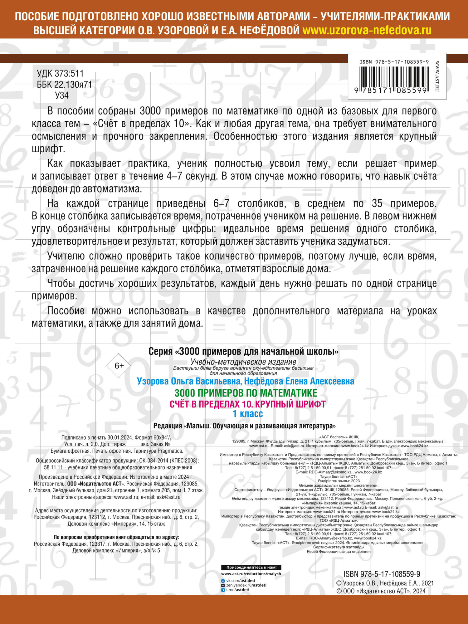 3000 примеров по математике . 1 класс. Счёт в пределах 10. (Елена Алексеевна Нефедова, Ольга Васильевна Узорова); АСТ, 2025