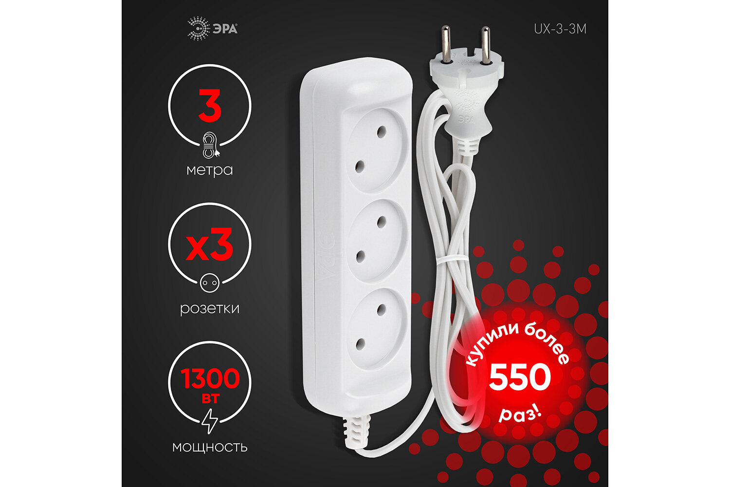 Сервис сравнения цен СкидкаГИД предлагает сравнить цены на товар «Удлинитель ЭРА Ux-3-5m Б0029841»