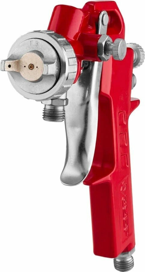 Краскопульт пневматический ЗУБР 06456-1.3, применяется в автосервисах, ремонтных мастерских и на специализированных предприятиях. Совместим с бытовыми компрессорами среднего уровня с невысокими рабочими характеристиками. Дюза 1,3 мм является универсальной при использовании различных ЛКМ. Быстрое и удобное подключение пистолета к пневматическому шлангу. Нижнее расположение бачка позволяет прервать работу и поставить пистолет на поверхность.