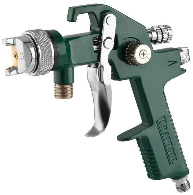 Краскопульт пневматический KRAFTOOL 06520-1.4, предназначен для выполнения окрасочных работ на специализированных предприятиях, в покрасочных мастерских и станциях технического обслуживания. низкое выходное давление из пистолета и высокий расход воздуха позволяют получить высокий процент переноса ЛКМ на окрашиваемую поверхность, равномерное распределение ЛКМ на поверхности, существенное сокращение объема аэрозольного тумана, высокая экологичность и снижение расхода ЛКМ.