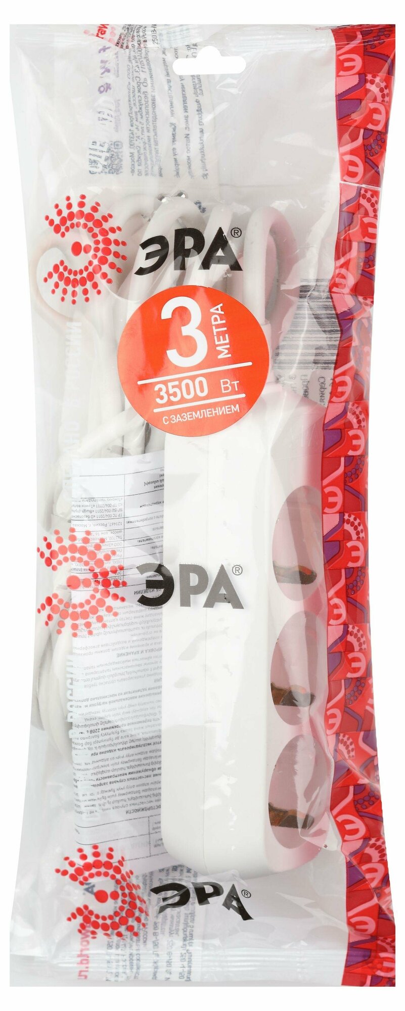 Удлиниль бытовой ЭРА. Серия U. Максимальная мощность 16 А/ 3500 Вт. С заземлением. Провод ПВС.