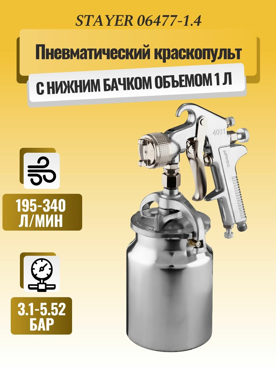 Пневматический краскопульт STAYER Professional airpro 06477-1.4