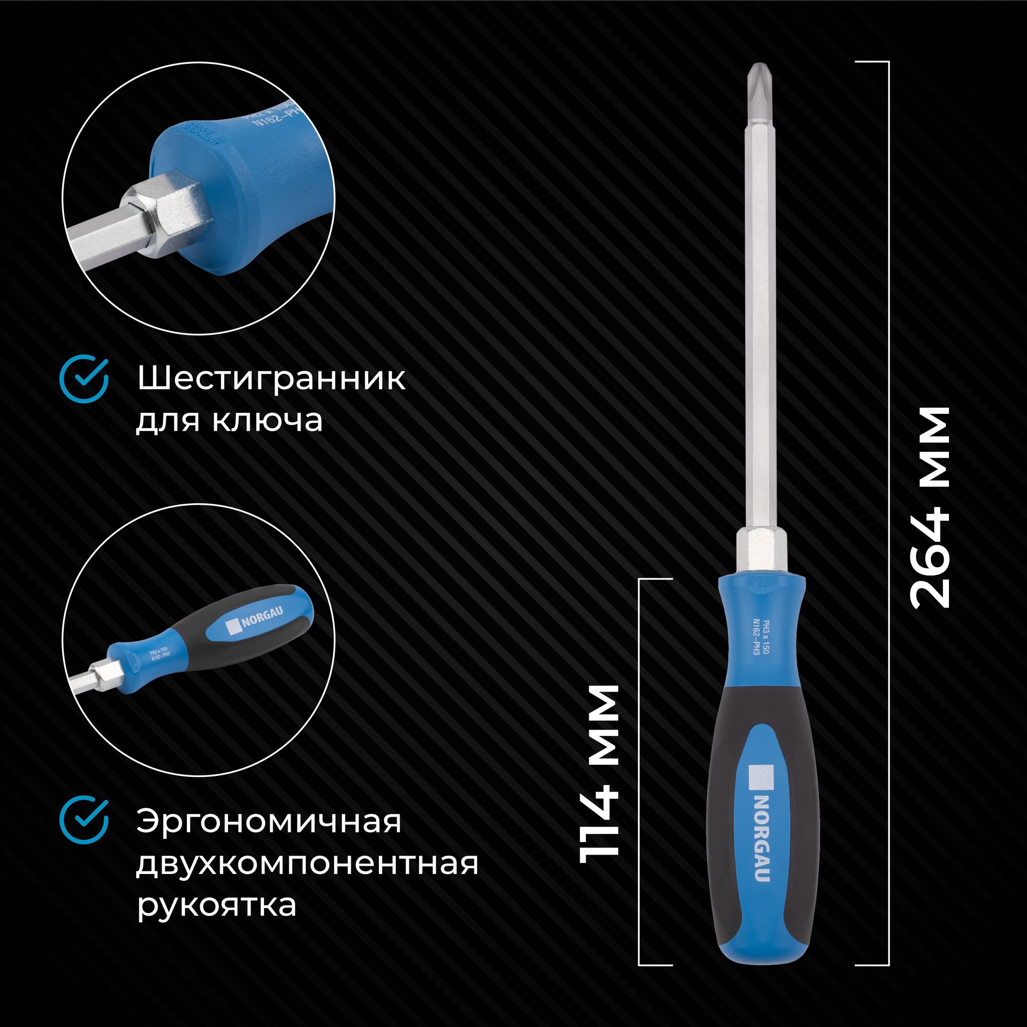 Профессиональная серия инструмента Norgau Industrial. Производство Германия. Под крестообразный шлиц Phillips. Размер шлица- PH3. Длина стержня- 150 мм. Длина рукоятки- 114 мм. Стержень с шестигранником под ключ для увеличения крутящего момента. Стержень изготовлен из высококачественной хромованадиевой-молибденовой стали. Дополнительное закаливание придает инструменту повышенную прочность и износостойкость. Максимально точное соответствие размерам крепежа позволяет достичь оптимальной площади контакта и избежать слизывания граней винта. Двухкомпонентная рукоятка обеспечивает защиту от проскальзывания, стойкость к химикатам и большинству растворителей. Изготовлено по стандарту DIN ISO 8764.