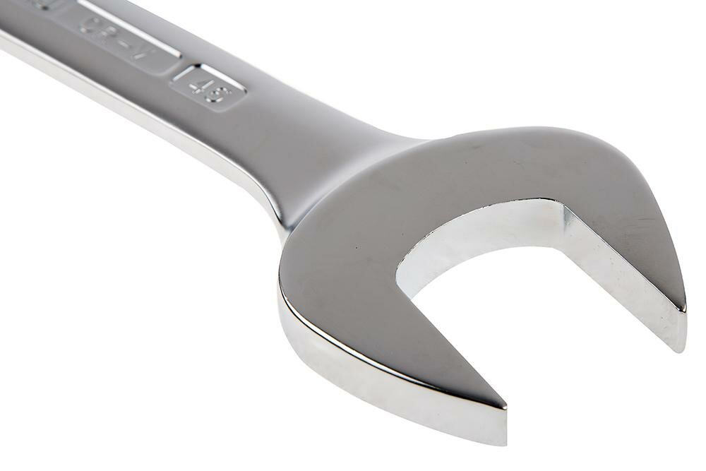 Технические характеристики:Длина ключа - 465 мм, Размер ключа-46х50мм Вес, кг 1.4 Гарантия -10 лет. Ключ изготовлен из высококачественной хромованадиевой стали (CrV), имеет высокую износостойкость. Максимально точное соответствие размерам крепежа, оптимальная площадь контакта, позволяет осуществлять работу с болтовыми соединениями не повреждая крепеж Двойной запас прочности снижает риск производственных травм Матовое хромирование поверхности ключа обеспечивает комфортное удерживание ключа в руках в случаях загрязнения смазочными материалами Качественное хромирование ключа обеспечивает надёжную защиту от коррозии Изготовлен в соответствии с DIN 3110 Губки рожковой части отклонены от оси ключа на 15 градусов, что позволяет работать в труднодоступных местах