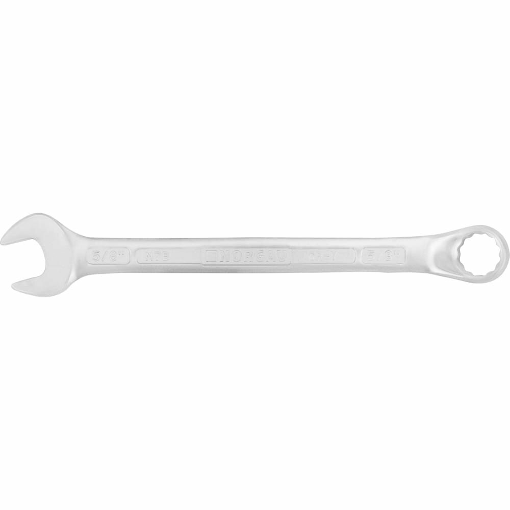 Ключ гаечный комбинированный N7B, 5/8" NORGAU Industrial, длиной 210 мм, имеет две головки с разными профилями, что расширяет сферу применения. Высококачественная хромованадиевая сталь, ковка и термическая обработка - для долгого срока службы комбинированного ключа. Ключ прошел высокоточную машинную обработку. Максимально точное соответствие размерам крепежа. Двойной запас прочности - для снижения риска производственных травм. Соответствие стандарту DIN 3113. Угол наклона кольцевого зева относительно плоскости ключа составляет 15 градусов. Рожковая головка отклонена от оси ключа на 15 градусов - для работы в труднодоступных местах. Накидная часть с 12-гранным профилем - для оптимальной передачи усилия и сохранности крепежа.