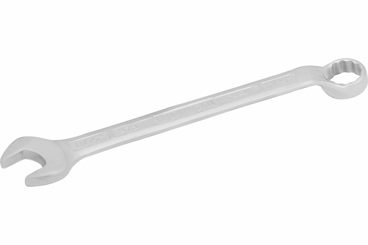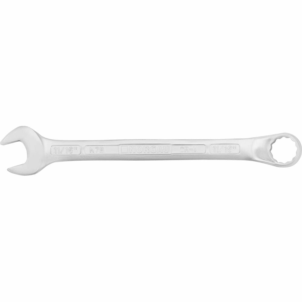 Ключ гаечный комбинированный N7B, 11/16" NORGAU Industrial, длиной 220 мм, имеет две головки с разными профилями, что расширяет сферу применения. Высококачественная хромованадиевая сталь, ковка и термическая обработка - для долгого срока службы комбинированного ключа. Ключ прошел высокоточную машинную обработку. Максимально точное соответствие размерам крепежа. Двойной запас прочности - для снижения риска производственных травм. Соответствие стандарту DIN 3113. Угол наклона кольцевого зева относительно плоскости ключа составляет 15 градусов. Рожковая головка отклонена от оси ключа на 15 градусов - для работы в труднодоступных местах. Накидная часть с 12-гранным профилем - для оптимальной передачи усилия и сохранности крепежа.