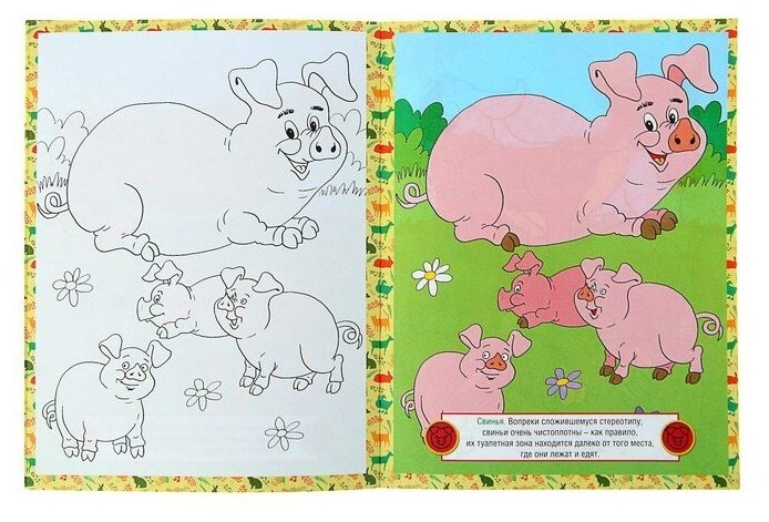 Раскраска с образцами для раскрашивания. Также содержит краткие, но интересные факты о домашних животных.