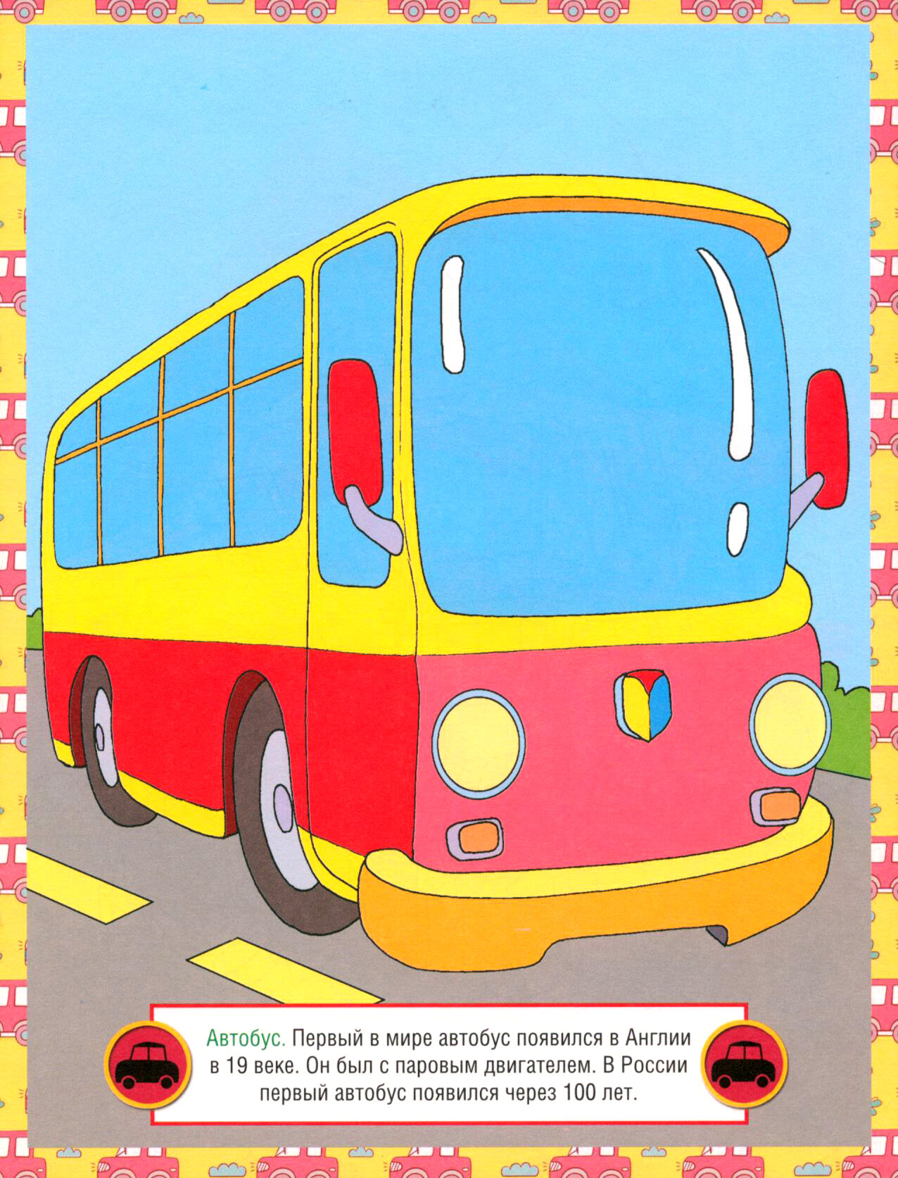 Раскраска с образцами для раскрашивания. Также содержит краткие, но интересные факты об автомобилях.