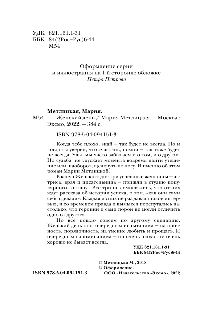 Книга: Женский день (Метлицкая Мария Робертовна); Эксмо, Редакция 1, 2018