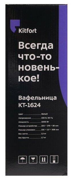 1624-КТ Вафельница Kitfort.Мощность: 1000 Вт.Длина шнура: 0,68 м.
