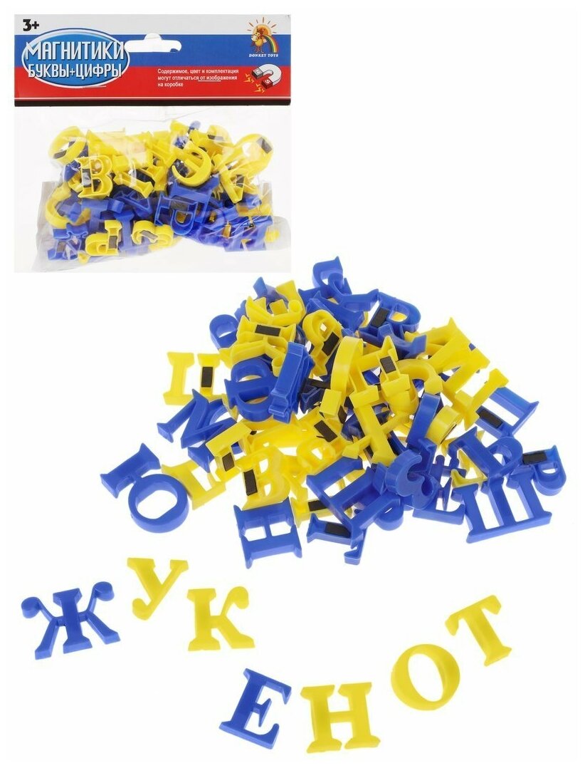 Набор Два жирафа состоит из 63 цветных пластиковых букв с магнитом внутри. Буквы выполнены в классическом стиле, малышам легко их распознавать. Буквы прикрепляются при помощи магнитов на любую металлическую поверхность, например на холодильник. В то время как мама занята приготовлением пищи, ребенок под мамину диктовку может составлять слова на холодильнике. Игрушка помогает овладеть алфавитом и научиться составлять слова, начиная с самых простых. Внимание! Цветовое исполнение набора может варьироваться и отличаться от изображения на фото.