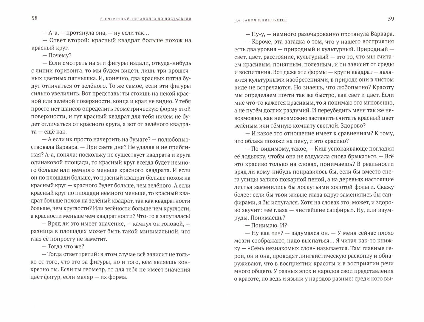 .Завораживающий роман В.Очеретного "Незадолго до ностальгии" сочетает в себе детектив с антиутопией, альтернативную историю с культурологическим эссе.