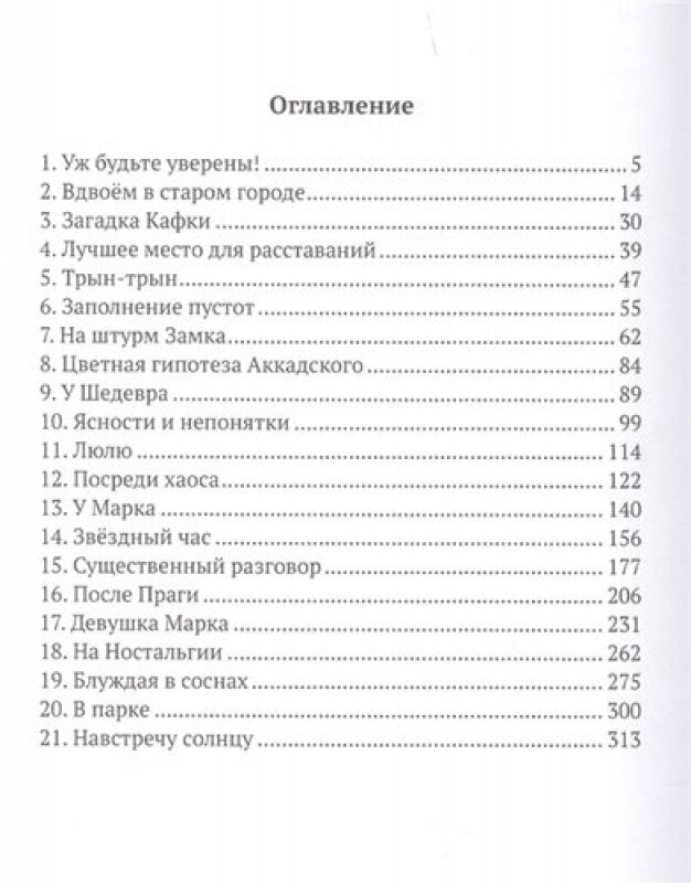 Мир в котором размер вашей тени зависит от того, как вы самореализуетесь в жизни: если успешно,- тень уменьшается, если бездарно живете - тень растёт. Мир в котором иногда устанавливается Связь времён, мир, в котором по разводе могут потребовать не только раздела имущества, но и воспоминаний. Мир, в котором есть остров Ностальгия и генетические путешественники во времени. Книга о любви, конечно же, но в тоже время это детектив и историческое расследование. Книга наполнена рассуждениями, диалогами, монологами на совершенно различные темы. Тут есть все. И рассуждения о дефенестрации и сравнительный анализ Гамлета и Дубровского. И тут есть Прага. Прага странная, Прага необычная, но такая знакомая. А в Праге есть Франц Кафка, после смерти которого таки сожгли все его рукописи и этим, он ещё больше тревожит воображение потомков. Очень надеюсь на продолжение в той или иной форме и уж, во всяком случае, буду следить за автором. -