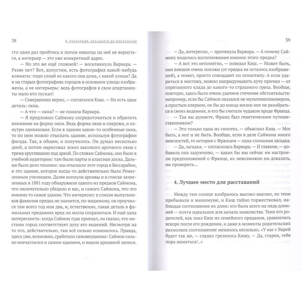 Незадолго до ностальгии – невероятная, странная книга, жанр которой определить очень сложно. Фантастический мир (ну хотя бы потому что наши тени не уменьшаются и не растут в зависимости от нашего внутреннего состояния, и нет в нашем мире такой профессии – тенетерапевт, и при разводе не делят воспоминания), но в то же время он очень наш и реальный. Я думаю, что книга найдёт своих читателей и среди тех, кто любит умные (хотелось бы выделить это слово) романы о любви двух неординарных людей, и среди тех, кто любит лингвистику, и рассуждения-открытия о литературе и философии. Осталось добавить, что автор – умный, тонко чувствующий язык стилист, обладающий чувством юмора.