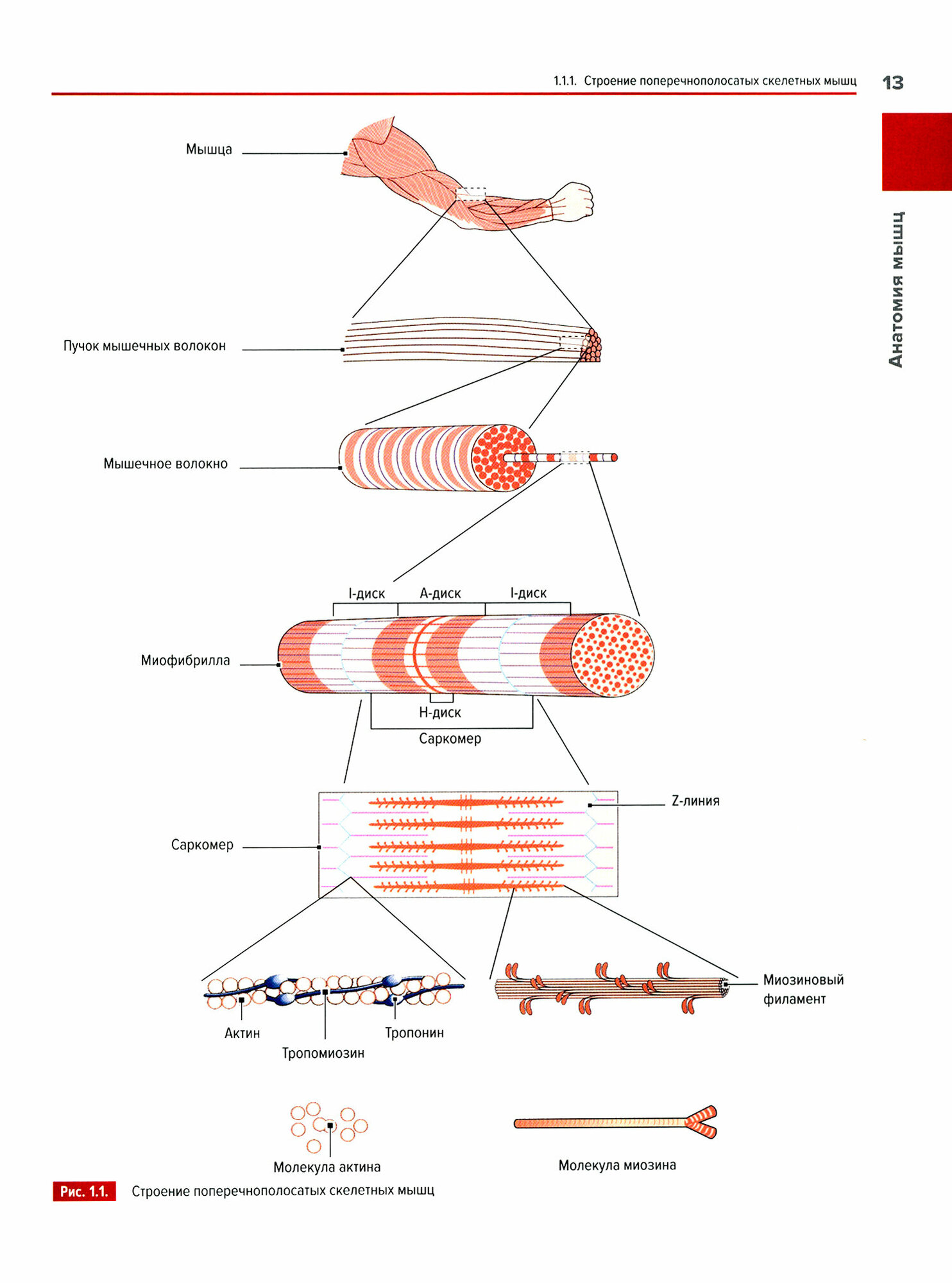 Издание состоит из 4 разделов: анатомия мышц, физиология мышц, тренировка мышц (с учетом их анатомии и физиологии), а также профилактика и реабилитация.