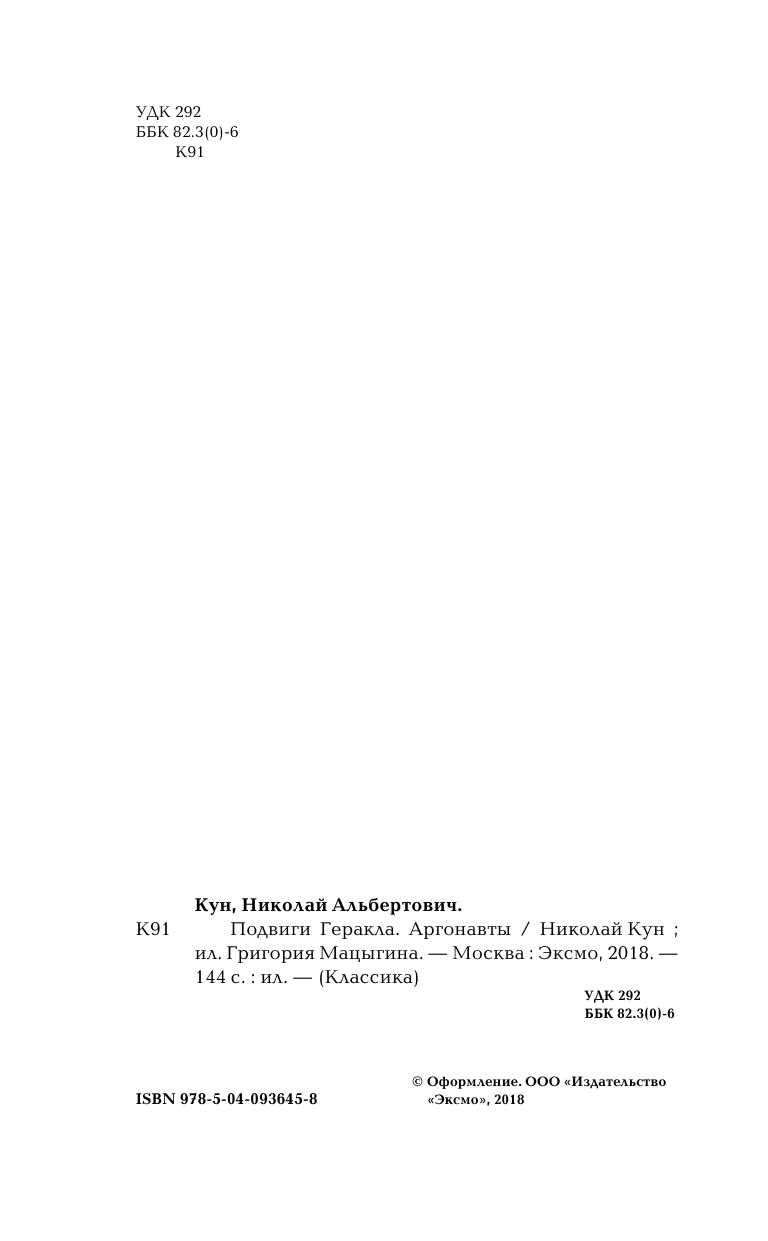Подвиги Геракла. Аргонавты (Кун Николай Альбертович); ООО "Издательство "Эксмо", 2018