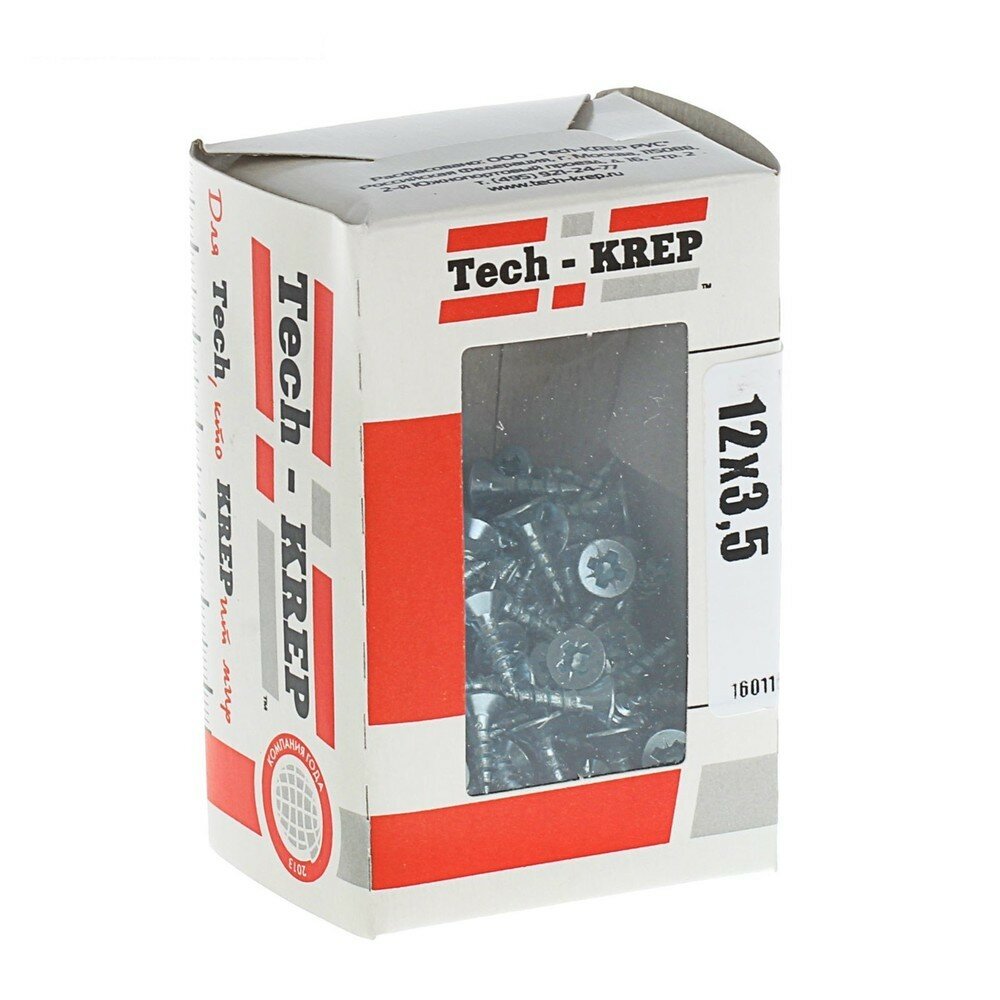 Саморез универсальный Tech-KREP, оцинкованный, 3,5x12 мм, потайная головка PZ2, 0.13 кг, 200 шт, – самонарезающийся шуруп, предназначенный для надежного соединения частей конструкции. Подходит для работы с различными материалами: металлом, деревом, пластиком. Фиксирующий элемент выполняется из высокопрочной стали, которая впоследствии покрывается слоем цинка. Материал устойчивый к коррозии, износу, вибрационным нагрузкам. Поставляется в картонной упаковке с окном.Отличительные особенности:влагостойкий, вибростойкий, прочный и износостойкий материал;выдерживает большой крутящий момент;шлиц имеет размер PZ2;надежное крепление деталей;долговечность соединяемой конструкции.Основное применениеСаморез – универсальное крепежное изделие, которое востребовано в строительстве и быту. Фиксирующий элемент с острым наконечником не требует сверления. Продукт предназначен для крепежа деталей к конструкции из пластика, металла, дерева и других материалов.