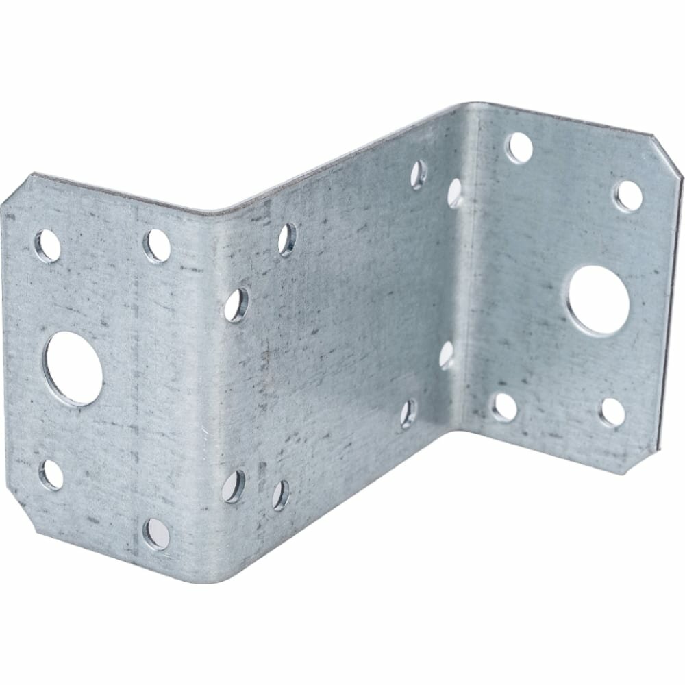 Область применения: применяется для монтажа стропильной системы при строительстве деревянных домов. Выполняет роль кронштейна для крепления деревянного элемента конструкции к основанию. Материал применения: дерево, кирпич, бетон. Материал: углеродистая сталь с антикоррозионным цинковым покрытием. Особенности: обеспечивает оптимальное распределение веса фиксируемого элемента. Благодаря тому, что на уголке имеются отверстия различного диаметра, для установки можно использовать саморезы, гвозди и анкерные болты. Крепление осуществляется без врезки в материал основания.